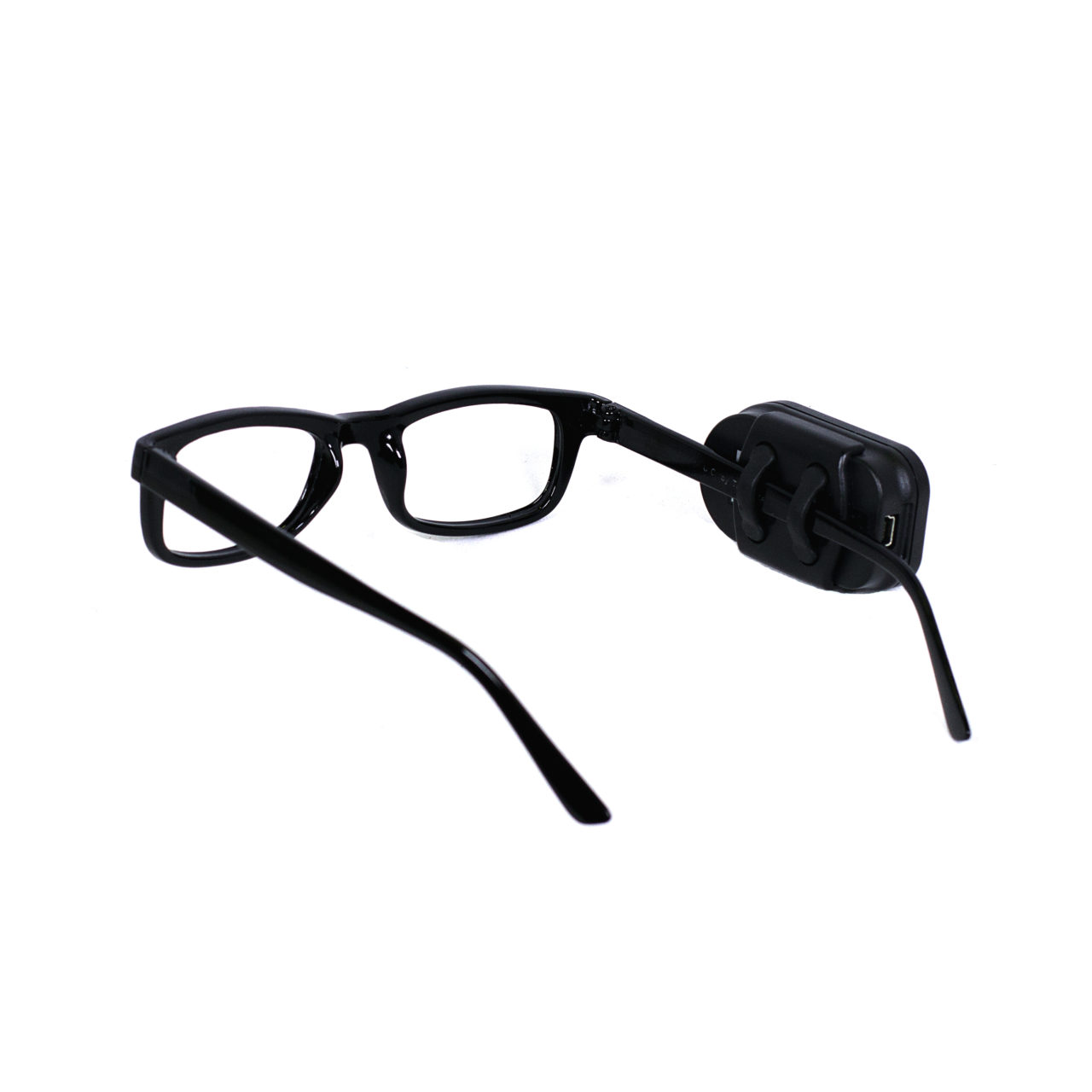 Light eyeglass clip weighs only 3.5 grams. It fits on most eyeglass arms not wider than 13 mm. Please note that usually the most comfortable place for Zono is just next to the ear.